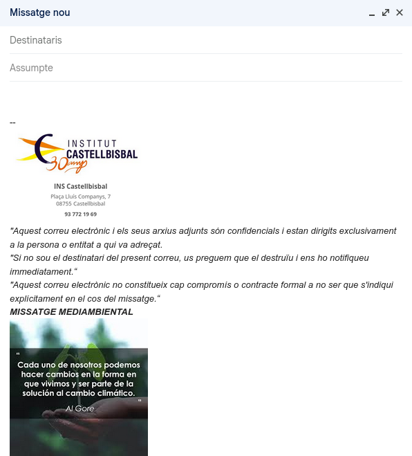 Per exemple jo he ficat el logo del institut que inclou mes informació, missatges mes professionals i per finalitzar un altre missatge però mediambiental.