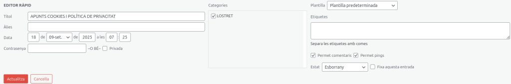 Les etiquetes: són paraules clau específiques que ajuden a identificar temes concrets dins d’una entrada
