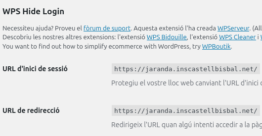 2. Entrar a configuració del plugin descarregat i un cop allà modificar el URL d’inici de sessió