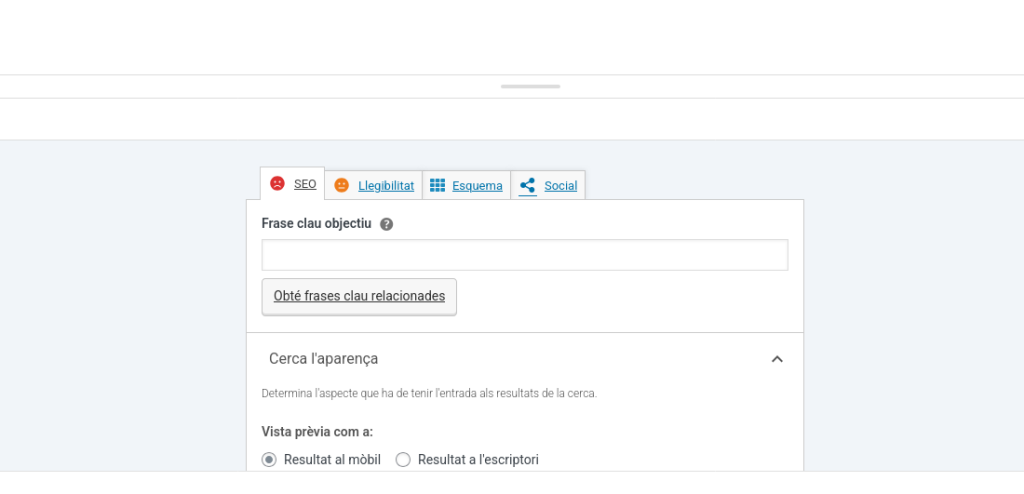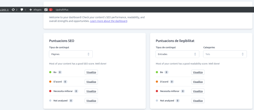 4. Un cop fets els passos dintre del mateix plugin veuras aquest menu on posaras les teves àgines i entrades per ser evaluades per aquest mateix.