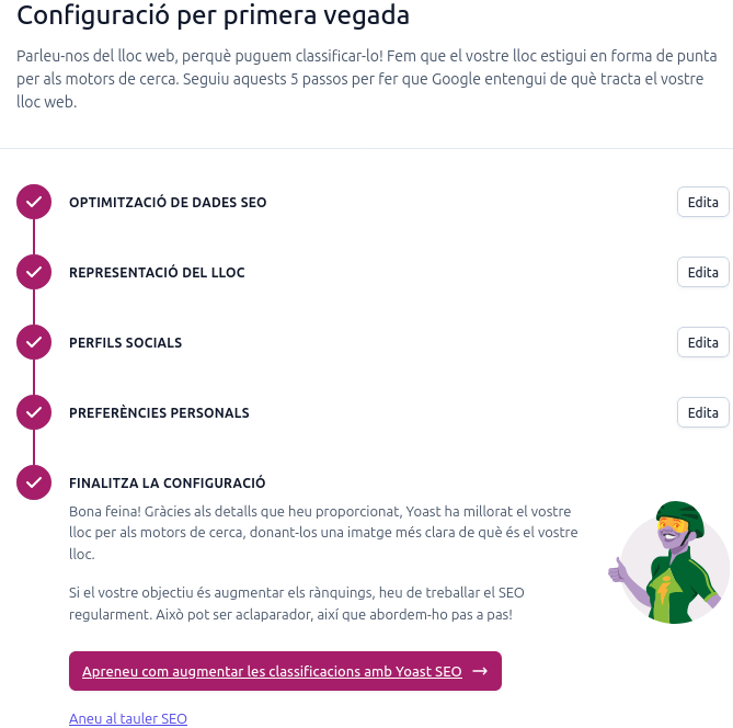 3. Aquí hauràs de seguir els passos que t’indica fins que tots els apartats s’hagin fet i com el seu nom indica podràs fer la teva configuració aquí.