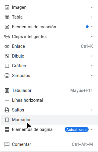 2.Anem al menú “Insertar” i seleccionem “Marcador”.