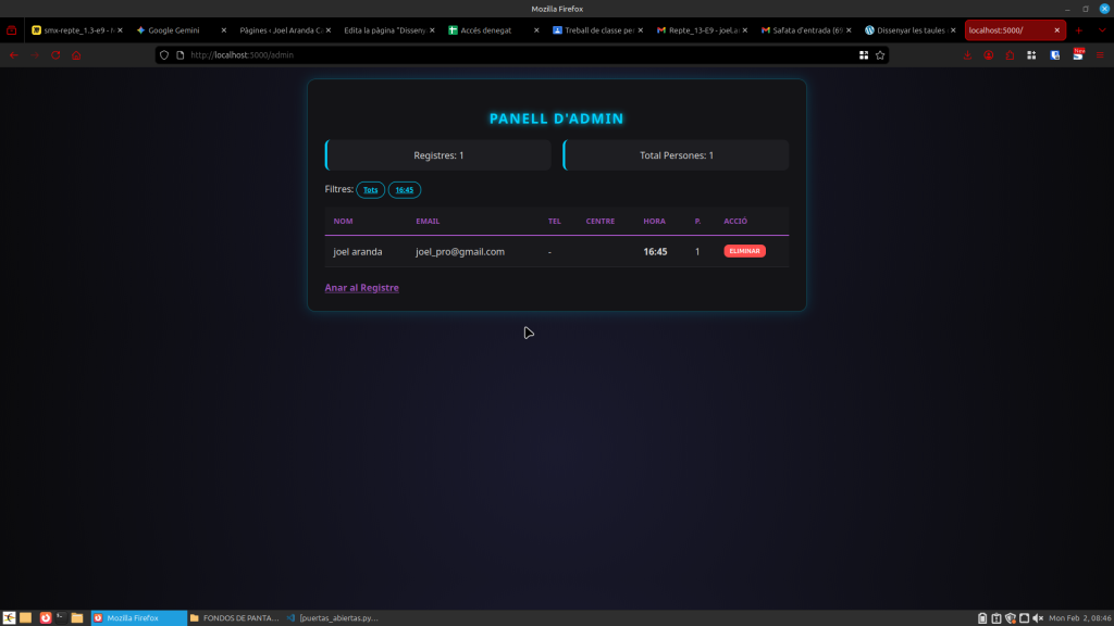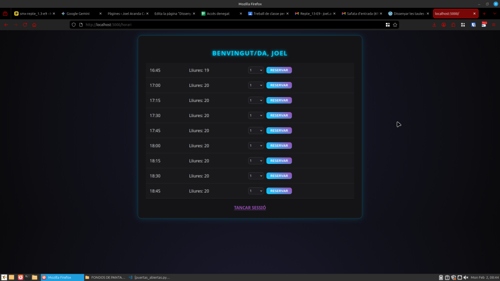 • Gestió d’Aforament: S’ha implementat una lògica de control d’ocupació (límit de 20 persones per franja) per garantir la seguretat física i l’estabilitat de la xarxa elèctrica i de dades.