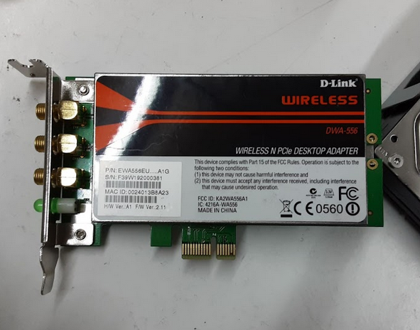 El component que apareix a la imatge és una targeta de xarxa sense fils PCI Express, concretament el model D-Link DWA-556 Wireless N PCIe Desktop Adapter.