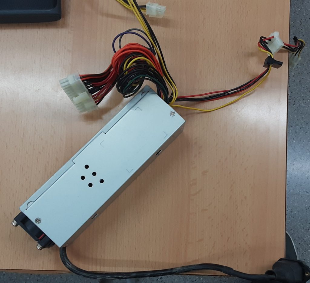 Seguidament, he instal·lat la Font d’alimentació que és el que dona electricitat a l’ordinador i on es connecta el cable de corrent. A la imatge es pot veure senyalitzat la font d’alimentació i l’entrada del cable.