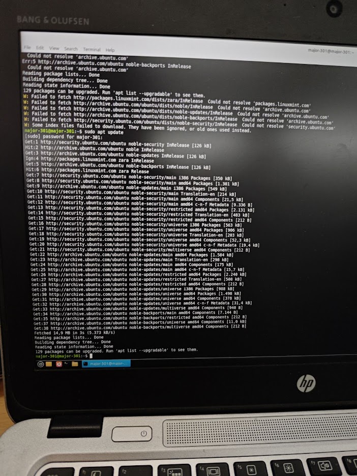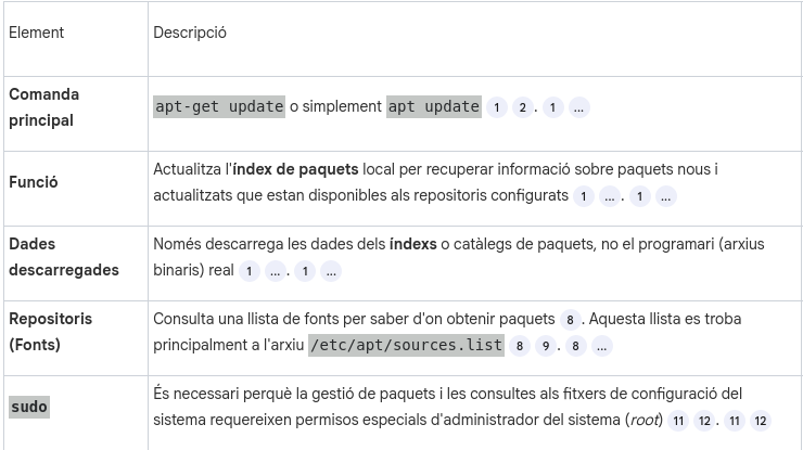 3. Ara que ets dintre de l’ordinador, entra a la terminal i executa el següent comand: “sudo apt update” (et demanarà la contrasenya de l’usuari)